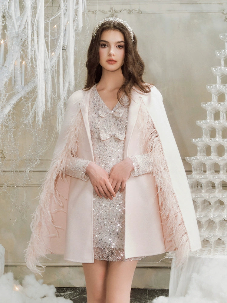 Indulge in luxury with our Wardrobes By Chen Light Pink Round Neck Sleeveless Dinner Coat. The epitome of class, this coat's elegant design will elevate any ensemble. Perfect for any occasion, its delicate pink color adds a touch of sophistication. Complete your wardrobe with this exquisite piece.