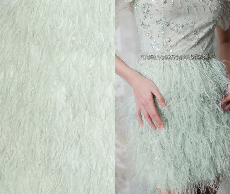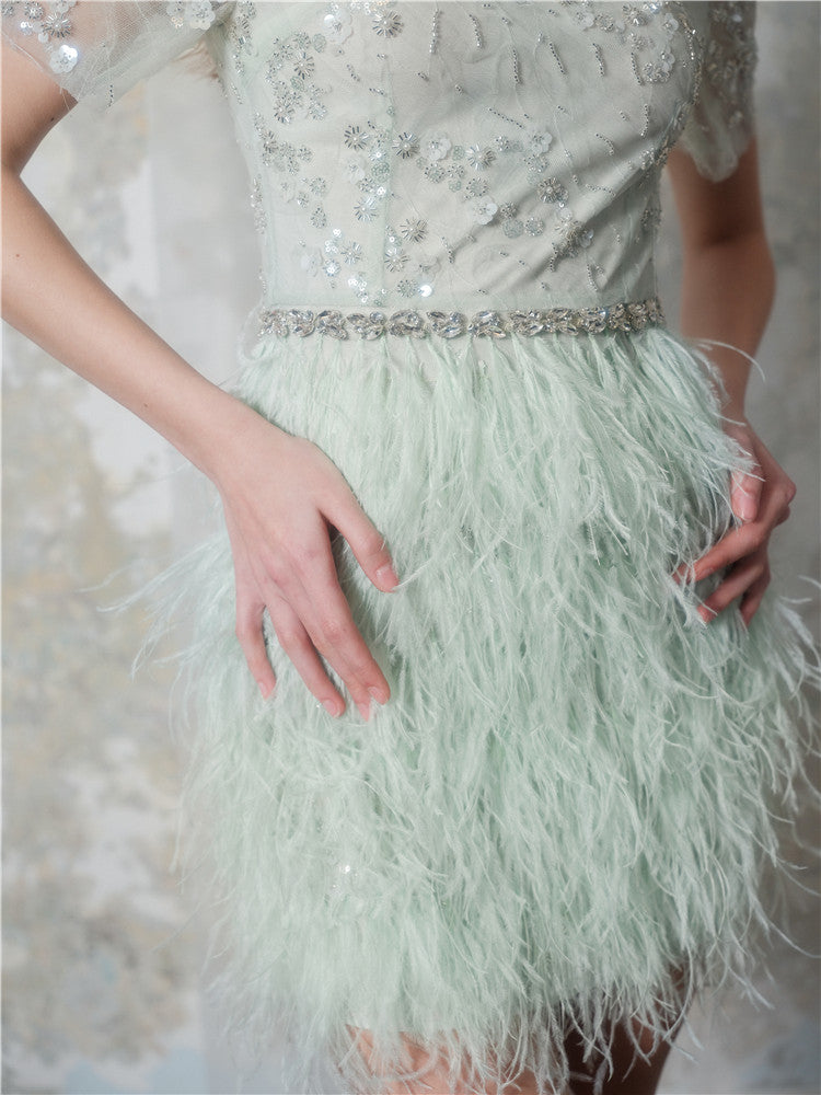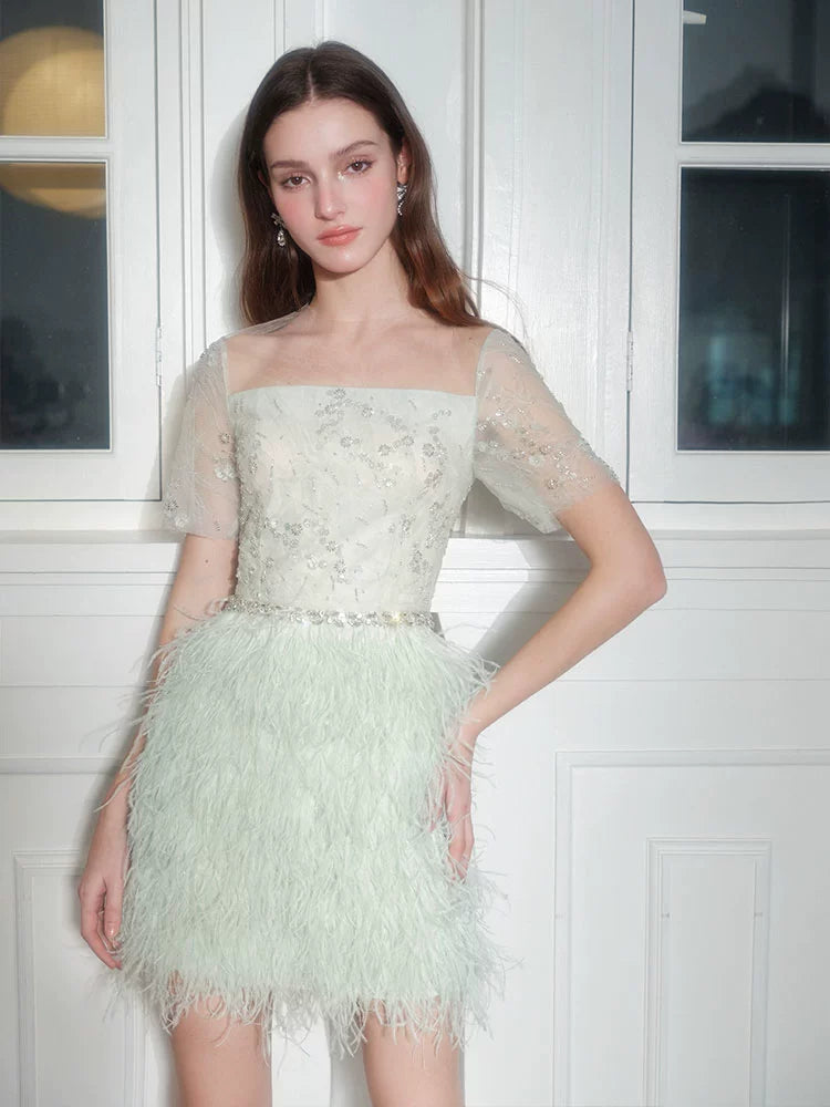 Wardrobes by Chen Luxury Mint Square Neck Lace Short Sleeve Cocktail Dress-Saint
