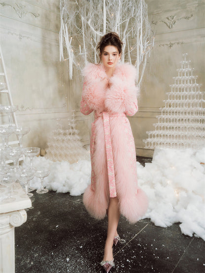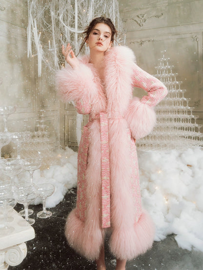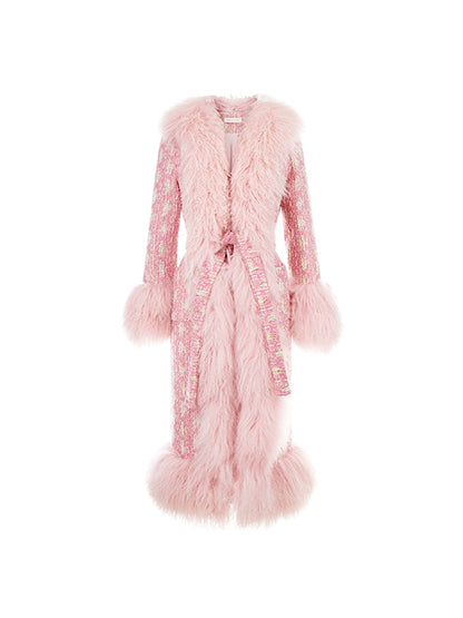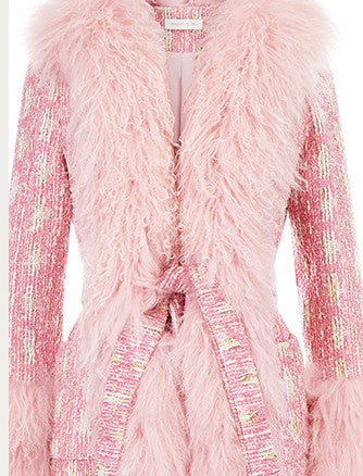 Wardrobes By Chen Luxury pink Long Sleeve Tie Fur Autumn winter Coat - Luisa
