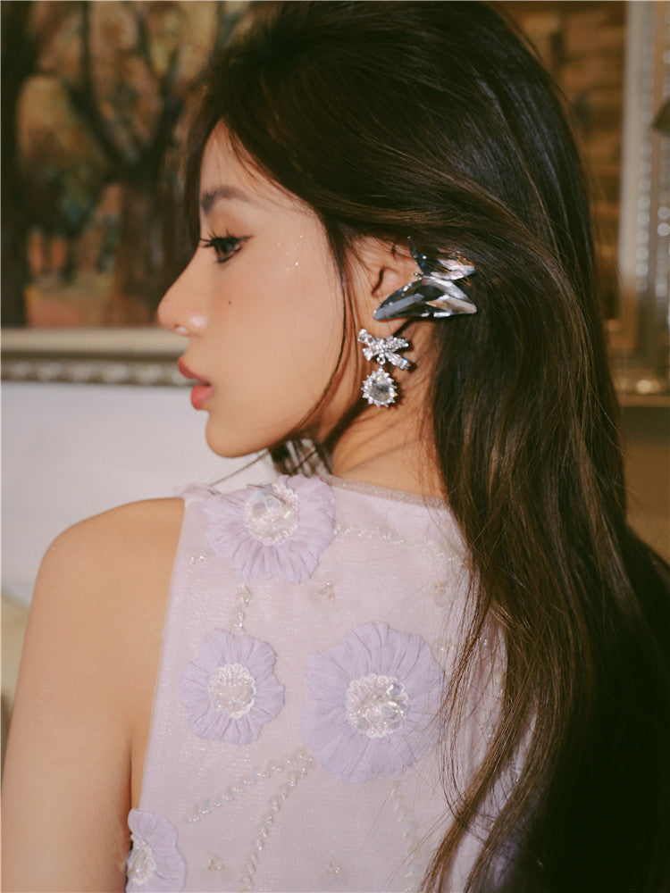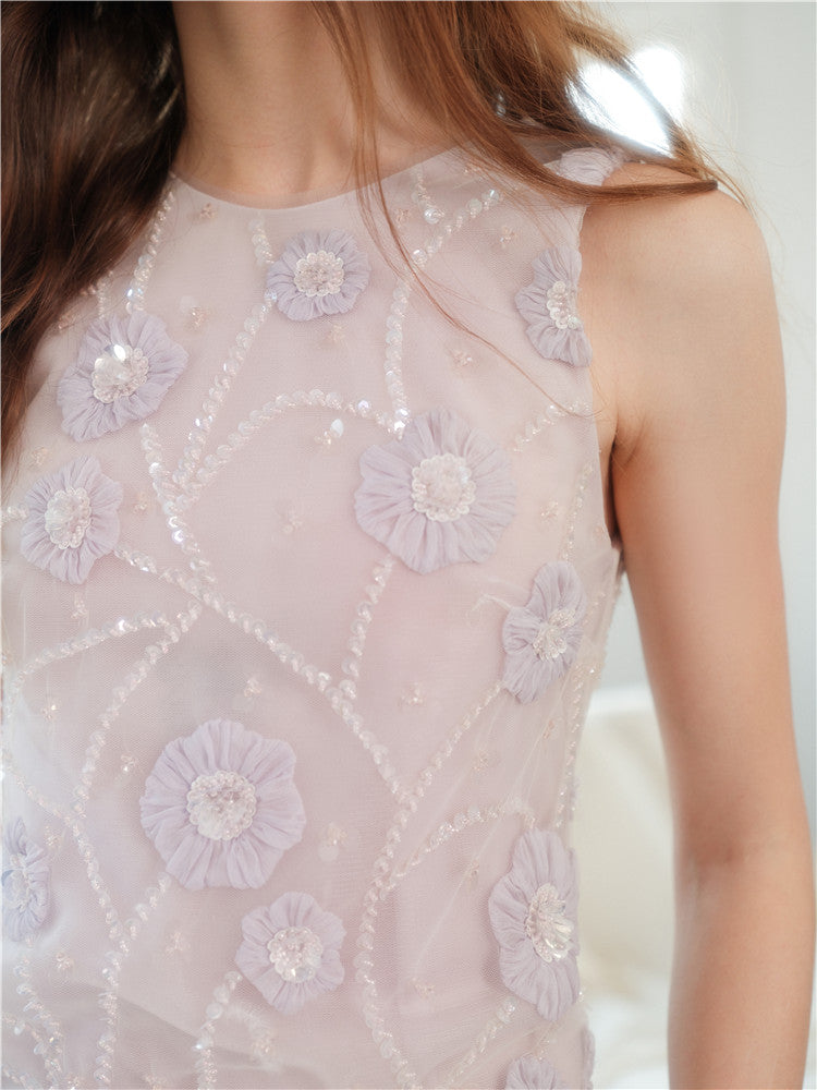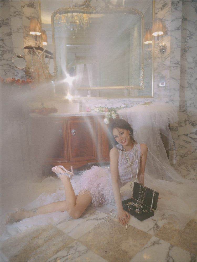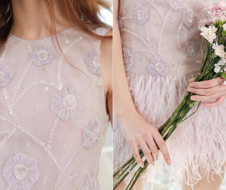 Wardrobes by Chen Purple Round Neck Sleeveless Dinner Feather Dress-Xera