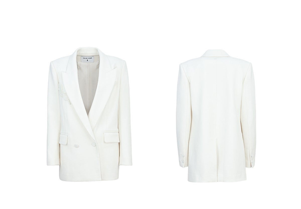 Elevate your wardrobe with the YES BY YESIR Ye Qian original designer long suit jacket set, showcasing a distinctive single gun bead horse motif. This luxury ensemble blends expert tailoring with sophisticated details, offering a refined and classy silhouette that stands out in any formal setting. The ICY set embodies poised elegance for the discerning fashion connoisseur.