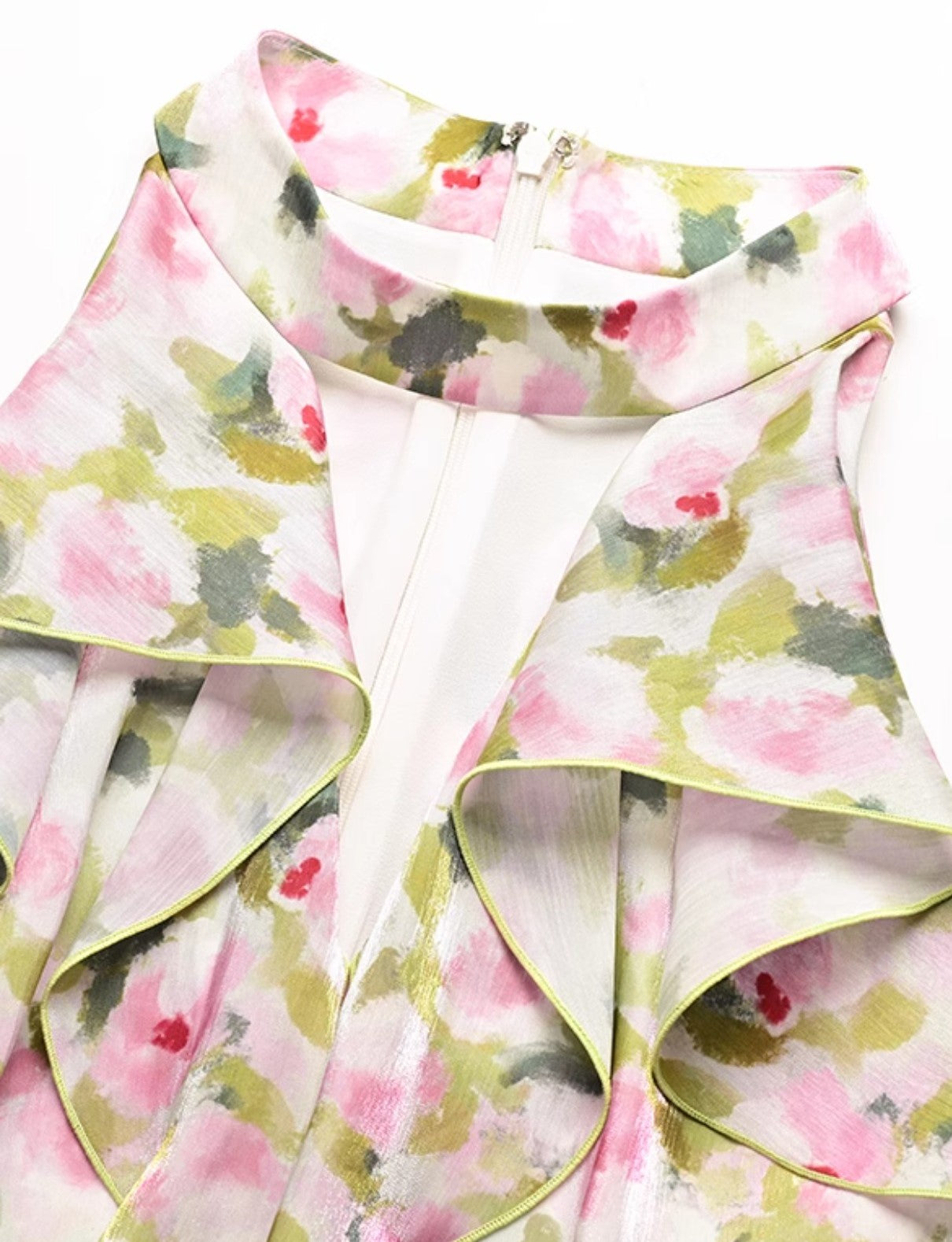 YES BY YESIR | Ye Qians Monet-Inspired Ruffled Halterneck Dress with Painterly Summer Grace-AMARIS.