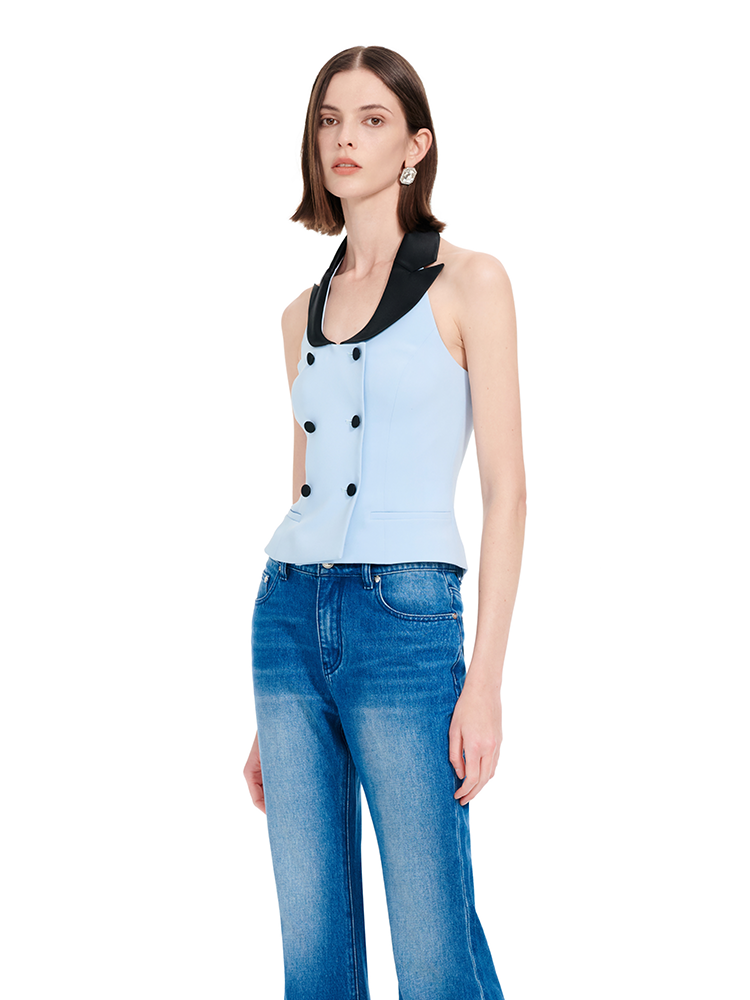 The YES BY YESIR Seafarer Edit Navy Vest combines elegant design with a refined coastal spirit. Featuring a deconstructed U-neck and tailored silhouette, this vest offers a sophisticated yet relaxed look inspired by maritime aesthetics. Crafted to elevate layering with subtle structure and effortless charm, it reflects Ye Qian’s vision of timeless style infused with coastal flair. Ideal for a polished, versatile addition to your wardrobe.