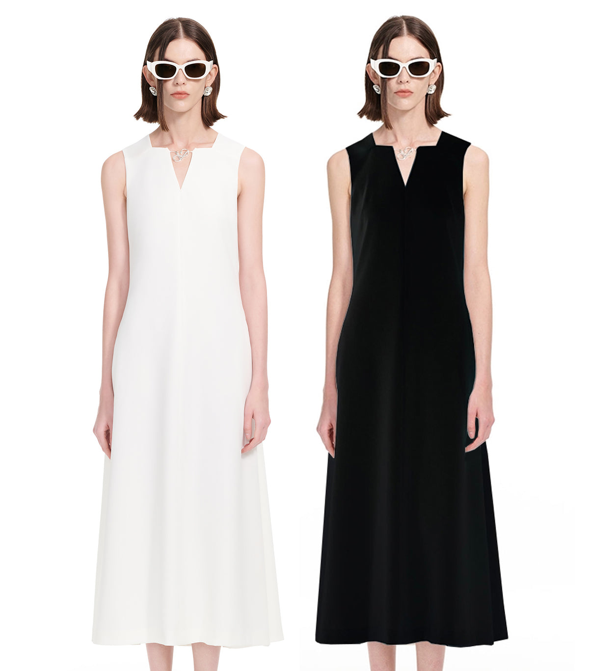 YES BY YESIR | Ye Qians Y-Shaped Metal Snake Accent Deconstructed V-Neck Midi Dress -SABRINA.