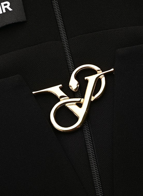 The YES BY YESIR Sabrina dress from Ye Qians’ Statement Edit offers a bold take on modern elegance. Its deconstructed V-neck design is accentuated by a distinctive Y-shaped metal snake detail, adding edgy sophistication to a refined midi silhouette. This piece balances avant-garde artistry with structured tailoring, perfect for those seeking a statement look with an understated yet striking finish. Ideal for occasions where innovation meets elegance, the Sabrina dress redefines contemporary fashion with its unique metal accent and sculptural form.