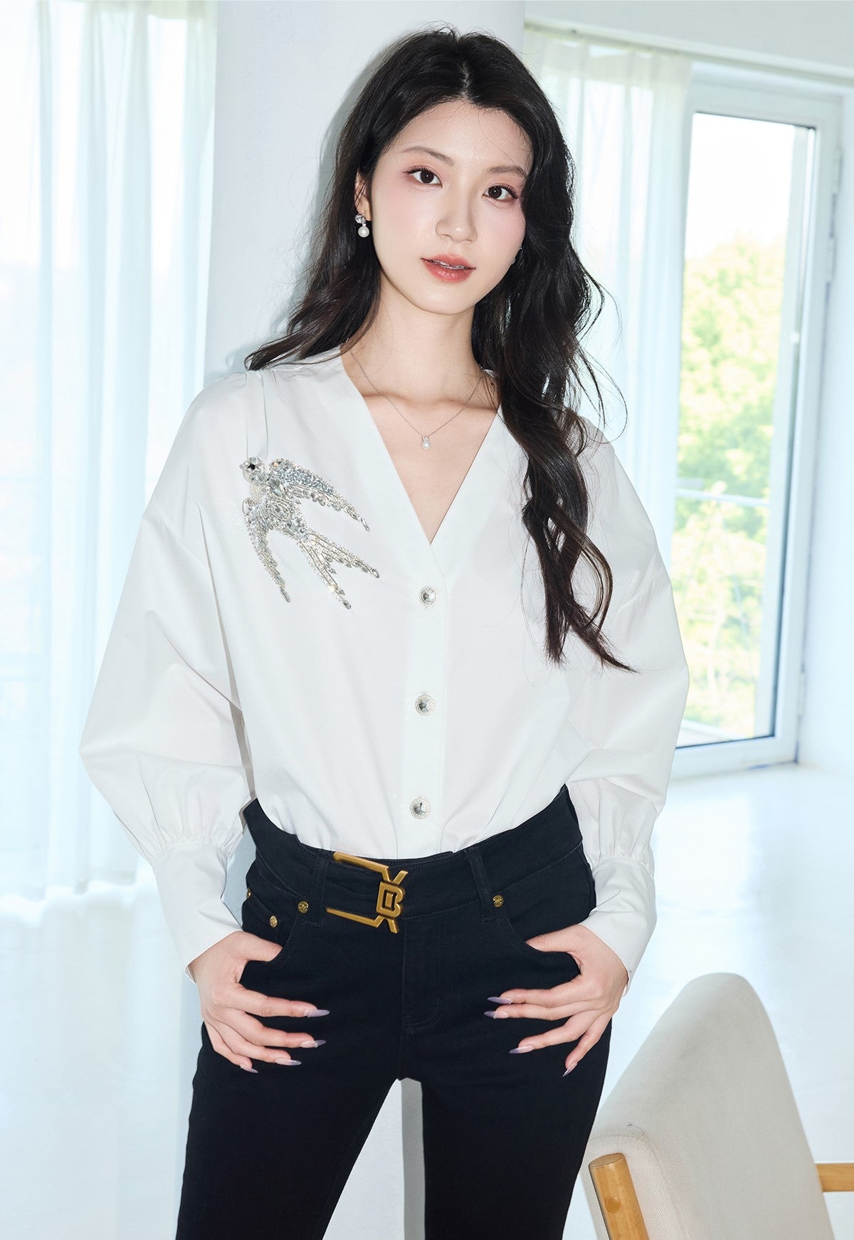 Elevate your wardrobe with YES BY YESIR Ye Qian's original Asuka diamond V-neck loose shirt. Crafted with an elegant, loose silhouette and a refined V-neckline, this shirt combines comfort with sophisticated style. Its distinctive diamond pattern adds a subtle luxury touch, making it perfect for both professional settings and stylish casual wear. Designed for those who appreciate timeless elegance with a modern edge, this piece ensures a polished, confident look effortlessly.
