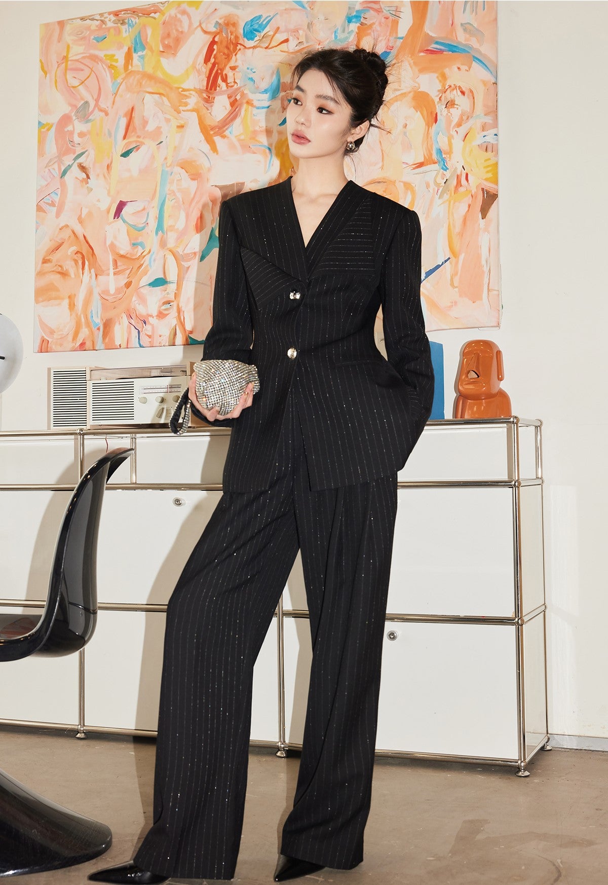 Crafted by YES BY YESIR's Ye Qian, the pants feature a refined blend of striped denim and elegant splicing, embodying an "old money" aesthetic with a modern twist. These luxurious trousers offer a sophisticated silhouette and impeccable tailoring, making them an ideal choice for those who appreciate timeless style with contemporary detailing.