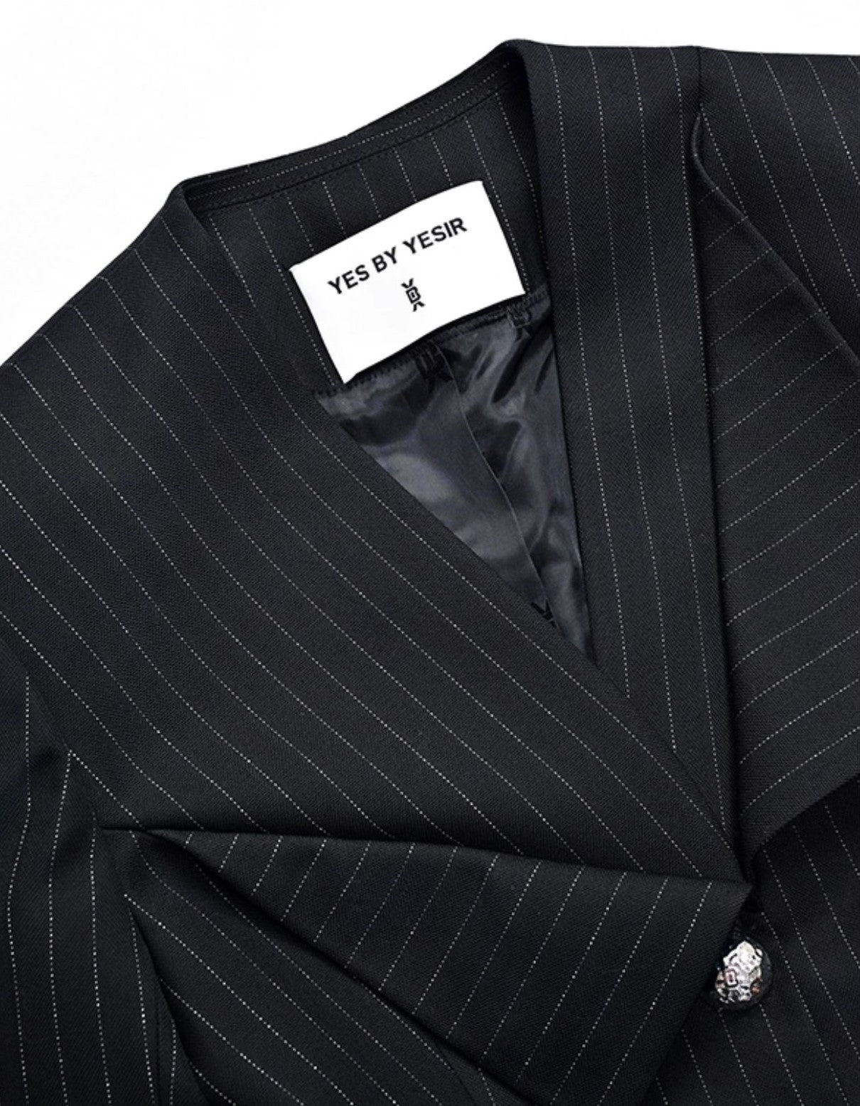 This elegant blazer from YES BY YESIR, designed by Ye Qian, features a distinctive deconstructed collar and refined vertical stripes in a soft blush tone. Its innovative design offers a modern twist on classic tailoring, making it ideal for professionals seeking a sophisticated yet unique look. Crafted to elevate your wardrobe with a subtle blend of structure and fluidity, this blazer enhances your silhouette while adding an expert touch to any ensemble.