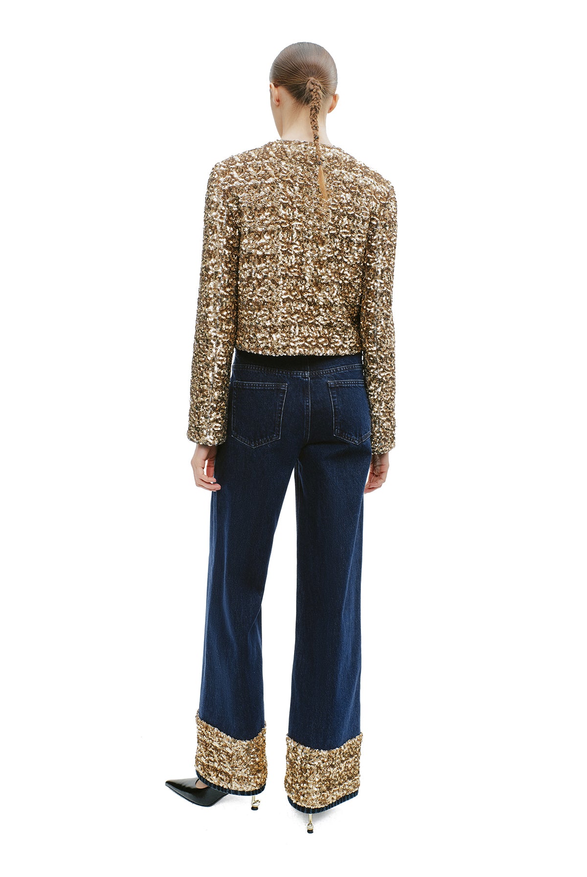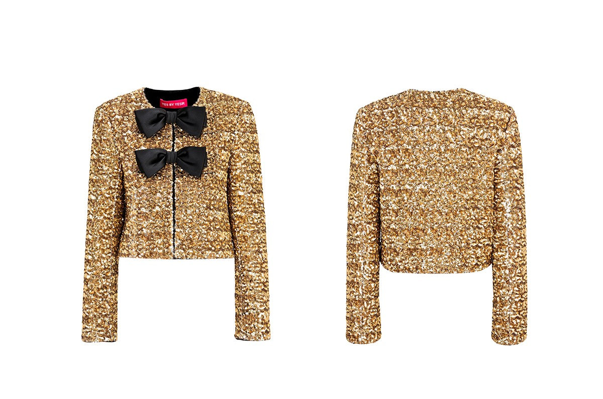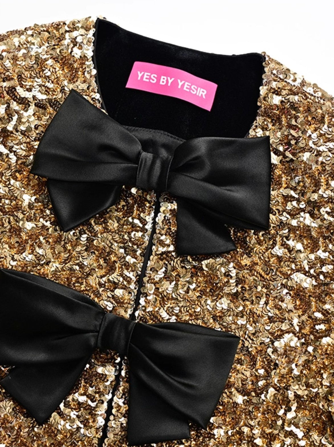 This elegant short jacket from YES BY YESIR features Ye Qian's signature design with a distinctive drunken gold fan bow decoration. Crafted for a loose, comfortable fit, it blends luxury with artistic flair, making it a sophisticated addition to your wardrobe. Perfect for those seeking refined style with a unique, designer touch.