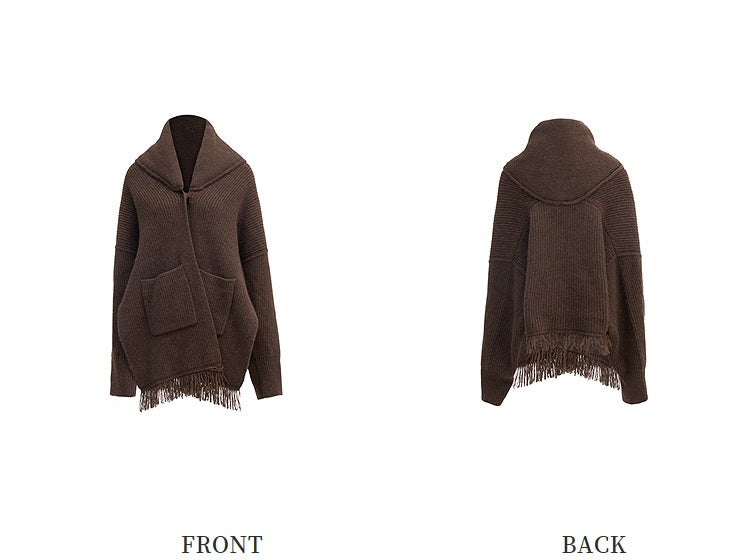 ZHUCHONGYUN Fringe Loose Drop Shoulder Pit Strip Knitted Jacket--YAKI.