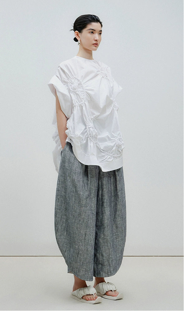 ZHUCHONGYUN Jacquard cotton linen belted loose cocoon pants-ARATAKA.