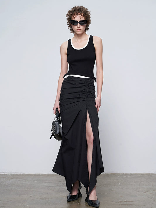ANNAKIK Black deconstructed two irregular pleated long skirts-HIDEMI