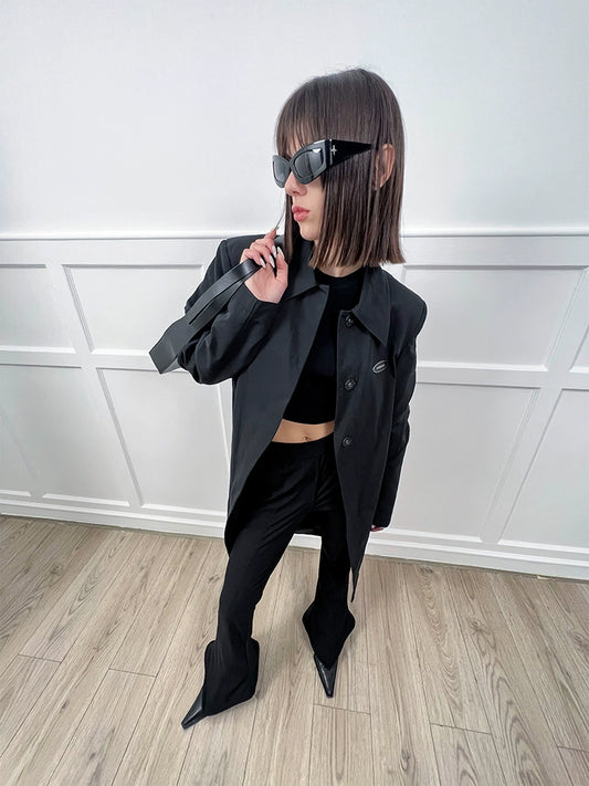 ANNAKIKI black acetate three-dimensional waist suit jacket for women-MARS
