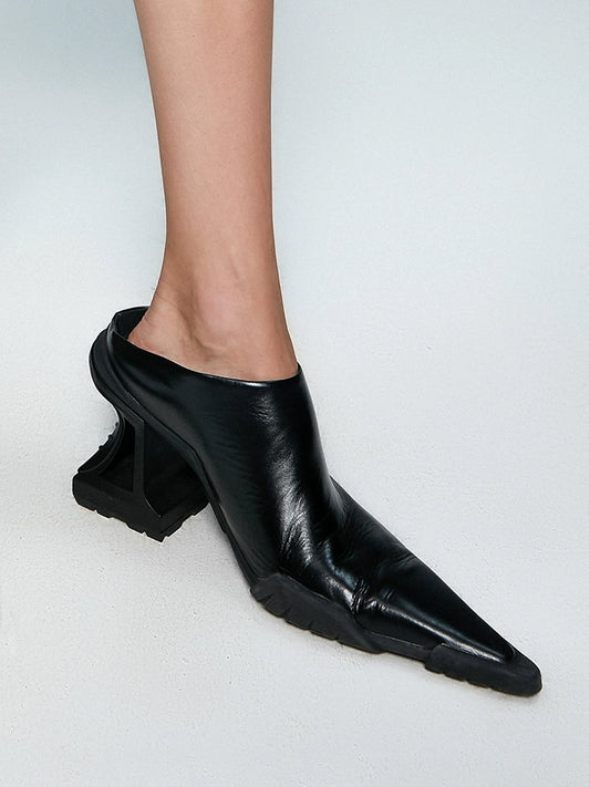 ANNAKIKI Black Genuine Leather Special-Shaped High Heeled Single Shoes -GORO