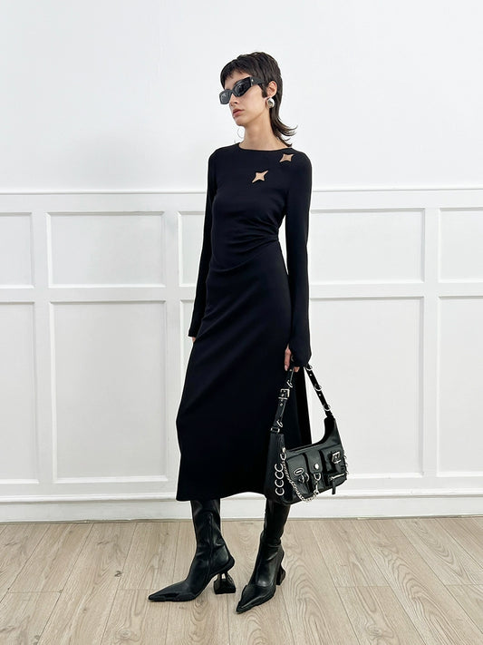 ANNAKIKI Black Cutout Four-Pointed Star Long Sleeve Dress Women-MARTIN