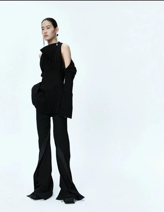 MAYALI off shoulder pressed pleated long sleeve luxury thin and high-end top - Rieve