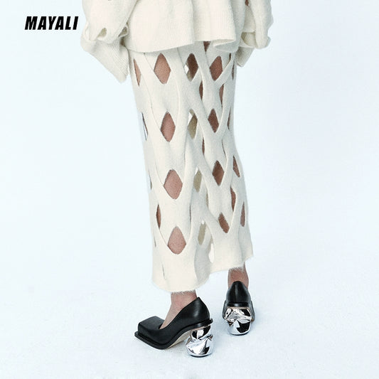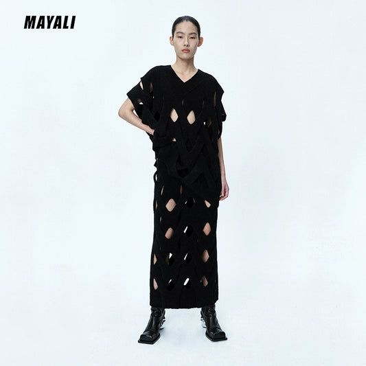 MAYALI fall/winter staggered openwork intarsia sleeveless vest top-Misi