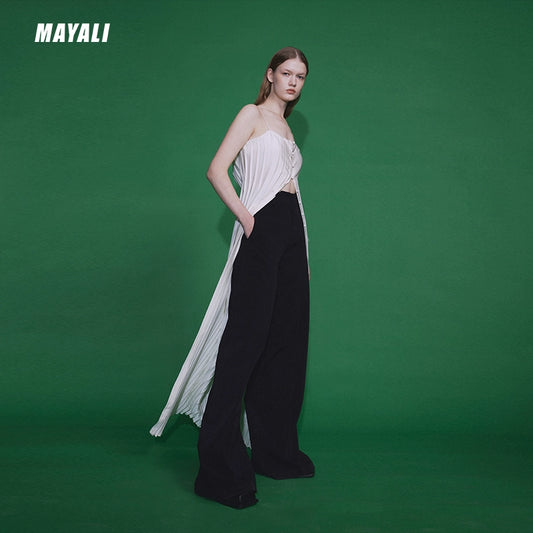 MAYALI mid-length single-breasted slip pressed pleated dress - Oceiji