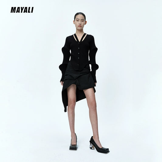 MAYALI Fall/Winter Threaded waistband panels asymmetric irregular cropped culottes