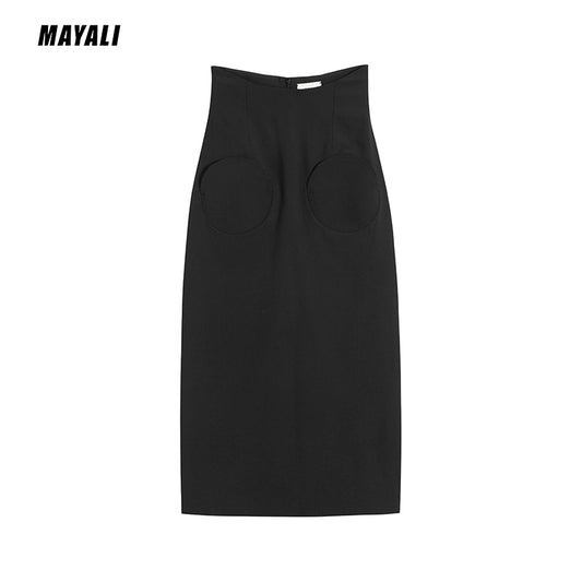 MAYALI POCKET HIGH WAISTBLACK WOOL MIDI PENCIL SKIRT - Sakara