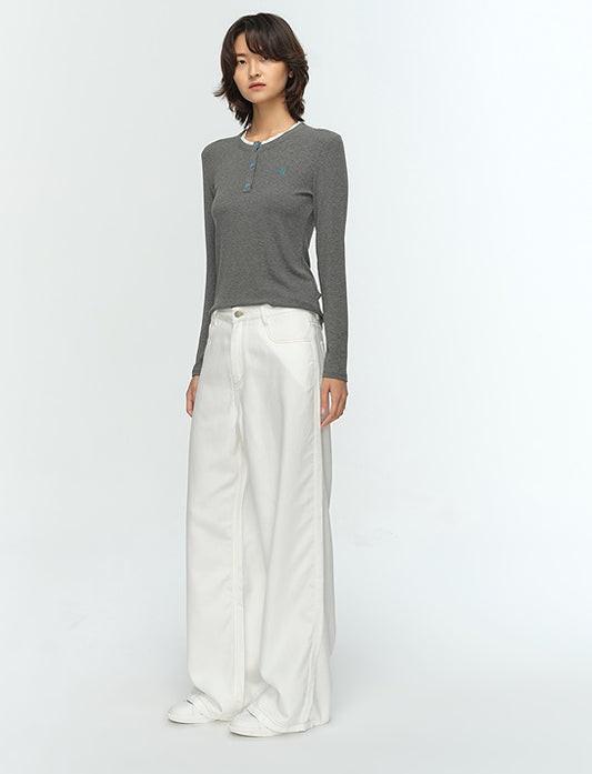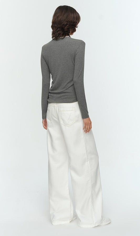 COMME MOI Lu Yan designer new women's Henry collar wool base T-shirt - OLIVIA.