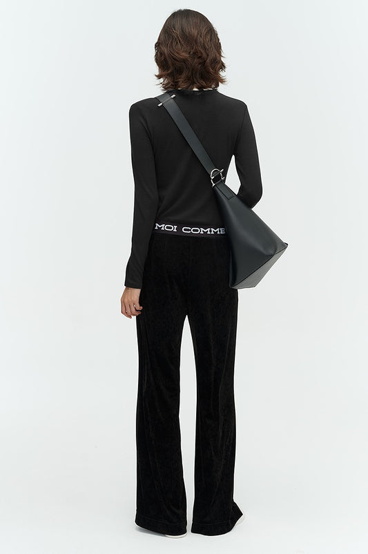 COMME MOI Lu Yan designer new women's velvet acetate logo wide-leg pants - FEEL.
