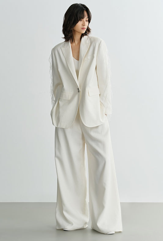 COMME MOI Lu Yan designer new women's fringed lace triacetic acid wide suit - WORRY.