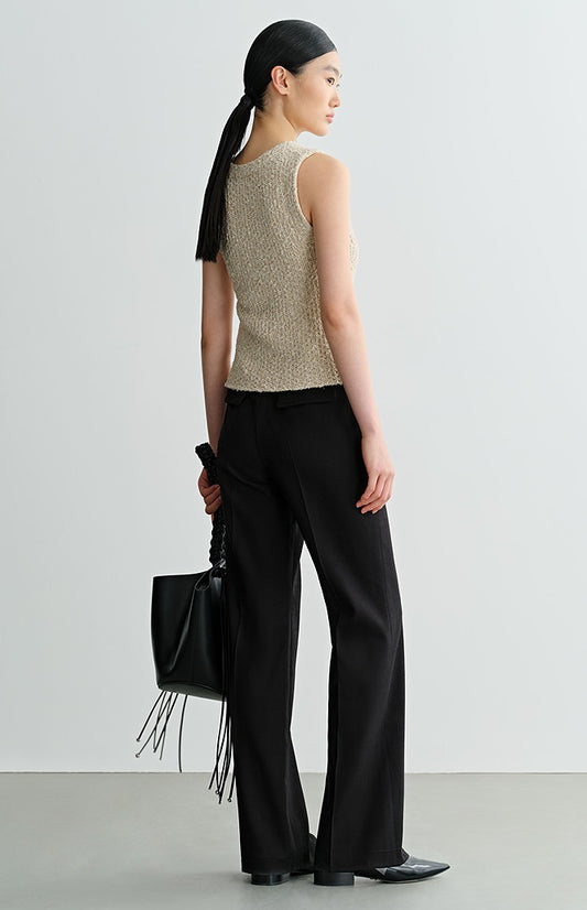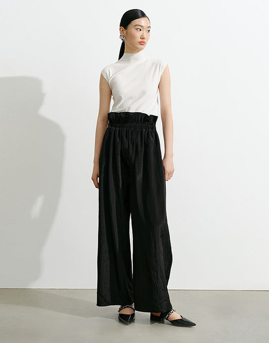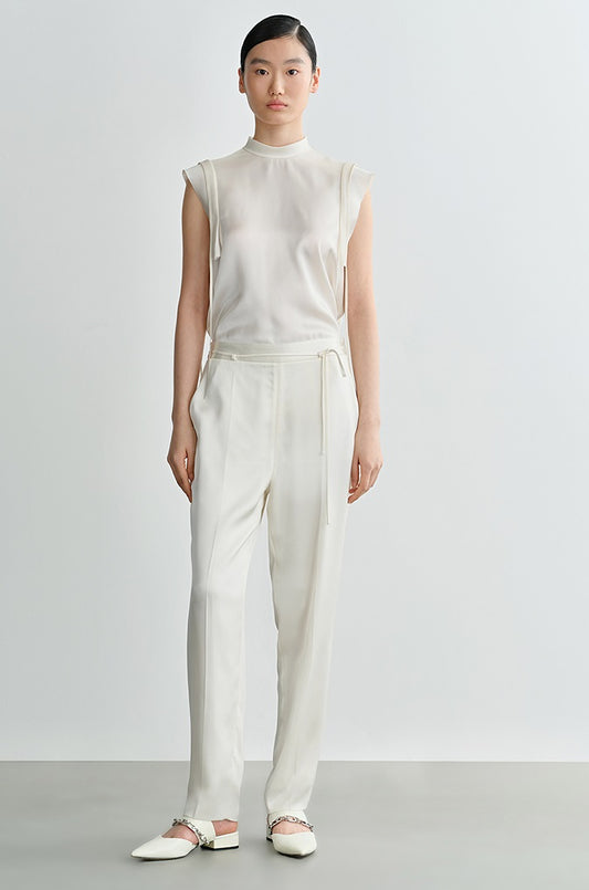 COMME MOI Lv Yan Designer Summer Acetate Satin Strappy White Tapered Pants -SUMMER.