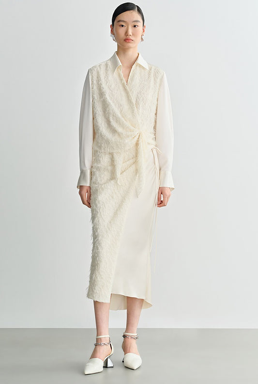 COMME MOI Lv Yan Designer Summer Acetate Texture V-Neck Waist Shirt - AYLA.