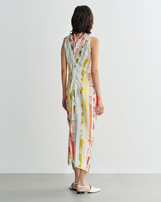 COMME MOI Lv Yan designer summer beach sleeveless print waist dress - AVA.