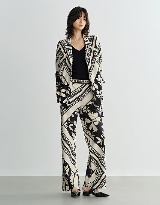 COMME MOI Lv Yan designer summer black and white printed tassel straight-leg pants - KAIN.