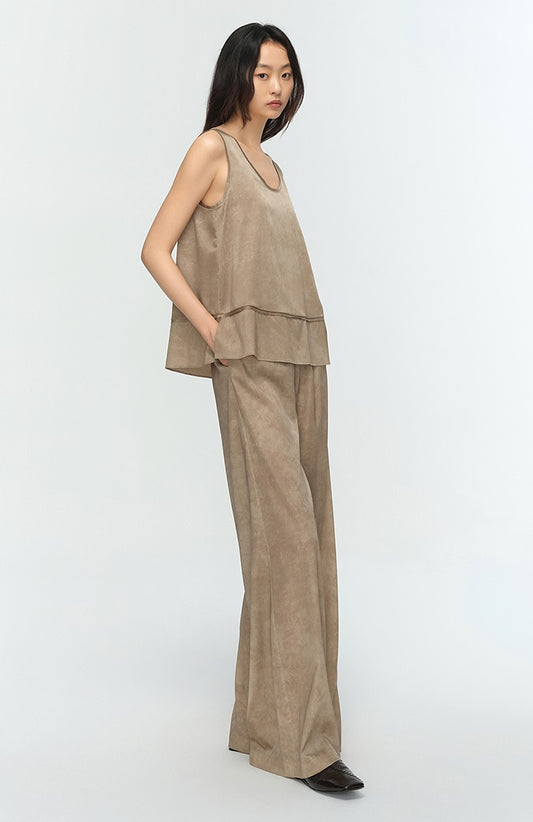 COMME MOI summer texture stitched satin straight-leg pants - ELIZABETH.