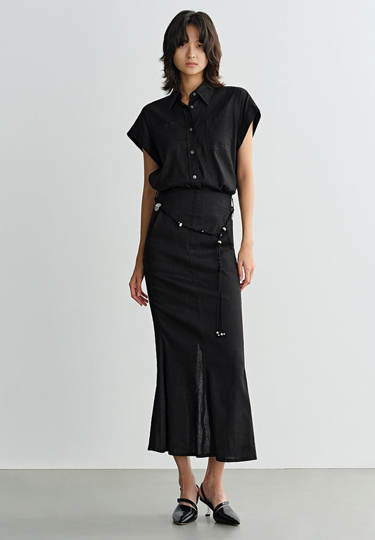 COMME MOI Summer Casual Black Small Cap Sleeve Straight Shirt - SALEM.