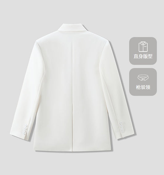 COMME MOI Summer White Double-Breasted Straight Blazer - MATHEW.