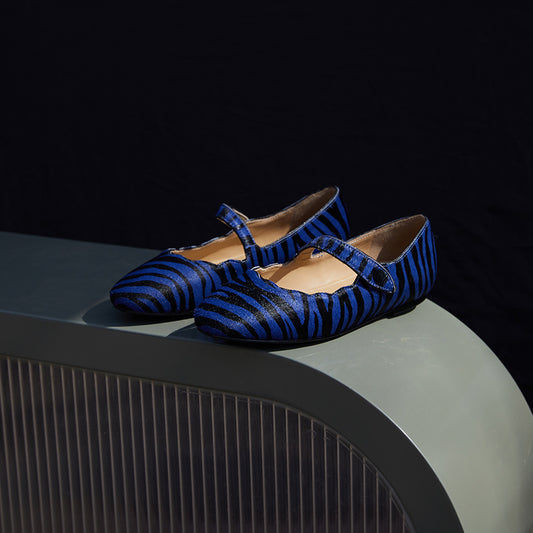 Designer zebra pattern texture comfortable Mary Jane single shoes- Haol
