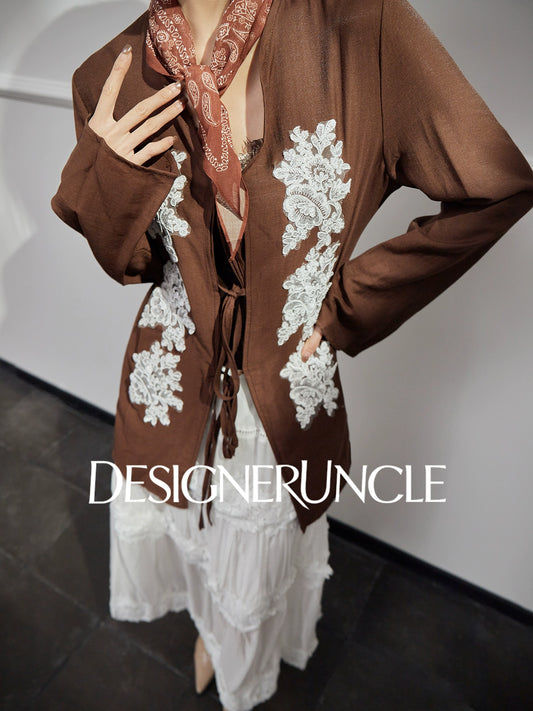 DGU "Mo Zhao" coffee new commuter retro loose Chinese embroidered top - POWER.