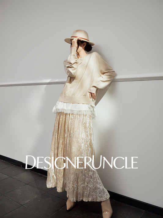 DGU "Mu Jin" khaki new retro velvet high-end slimming skirt - STOP.
