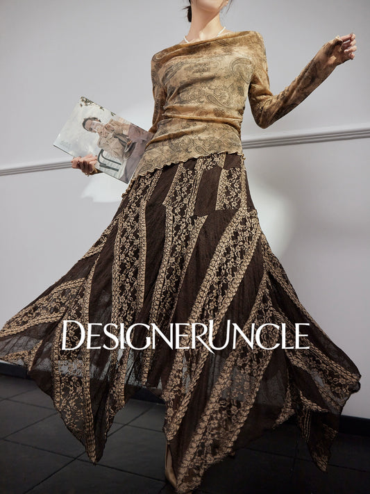 DGU "Night Weave" coffee skirt new A-line high-waisted long slimming top - PAYPHONE.