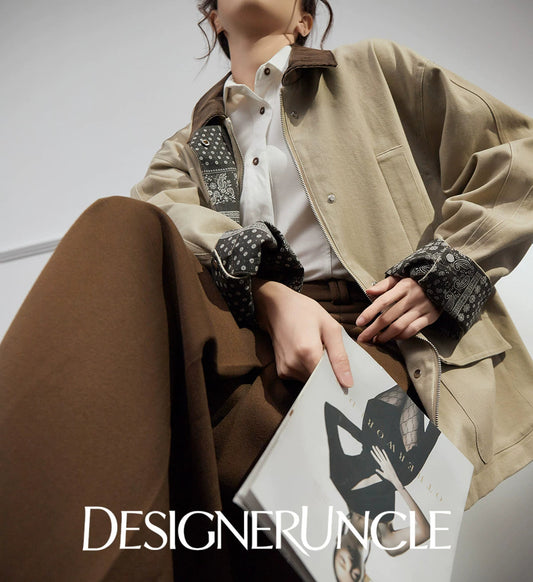 DGU "Mu Brown" retro khaki jacket retro loose slimming versatile top - Wilhelmina.