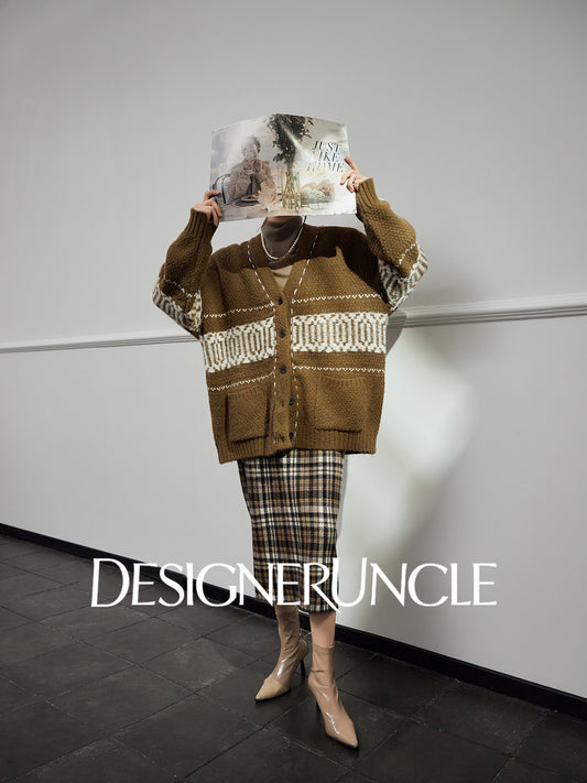 DGU "Tanger" Fair Isle sweater women's retro loose knitted cardigan jacket - ALEX.