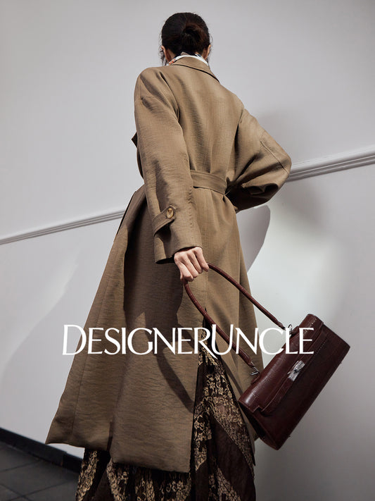 DGU "Twilight" coffee trench coat new loose lapel slimming high-end long jacket - BADE.