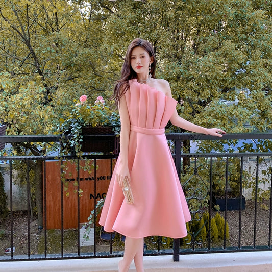 DOLLY Elegant Off Shoulder Pleated Ruffle Tube Top High Wait Midi Dress-LLA
