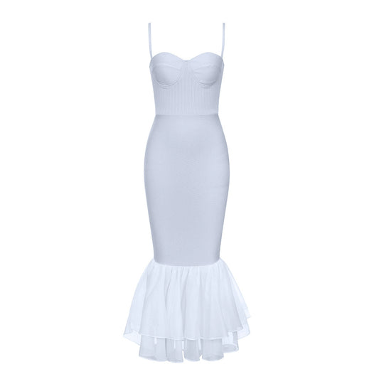 DOLLY Elegant Nude French Style Sleeveless Ruffle Fish Tail Dinner Dress-AMALIA