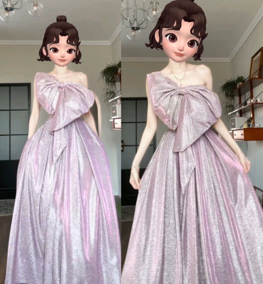DOLLY Elegant Purple Off Shoulder Bow Sequin Long High Waist Cocktail Dress-TESSA (V)