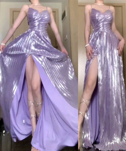 DOLLY Elegant Purple Sleeveless High Waist Long Slit Fishtail Cocktail Dress-ADURA (V)