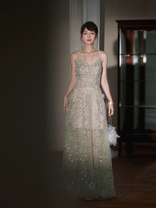 DOLLY Elegant Sleeveless Light Sequin Sparkling Sequin Suspender Dress-BRENDA (V)