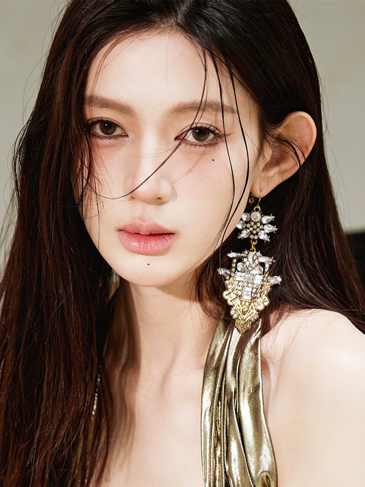 DOLLY Elegant Stylish Ancient Gold Diamond Vintage Earrings-ELINA (V)