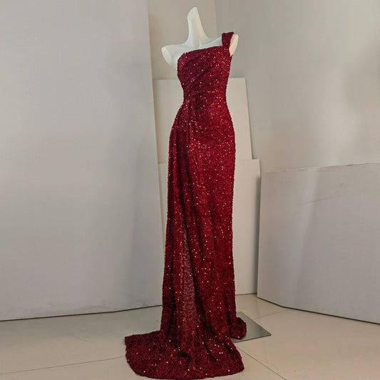 DOLLY Elegant Sliver Sleeveless One Shoulder Long Glittering Evening Dress-PAULA (V)