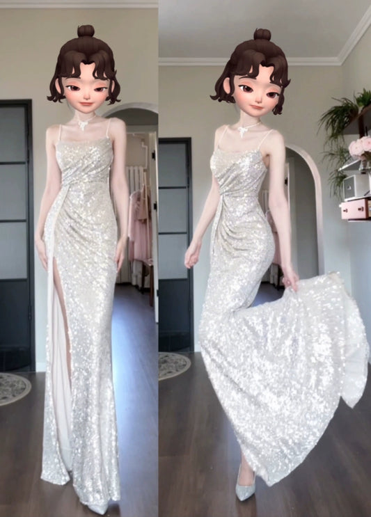 DOLLY High End Sequin Sleeveless Slim Fit High Waist Long Slit Cocktail Dress-HOLIE