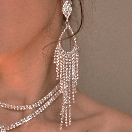 DOLLY High End Rhinestone Tassel Clip Earring-ARIA